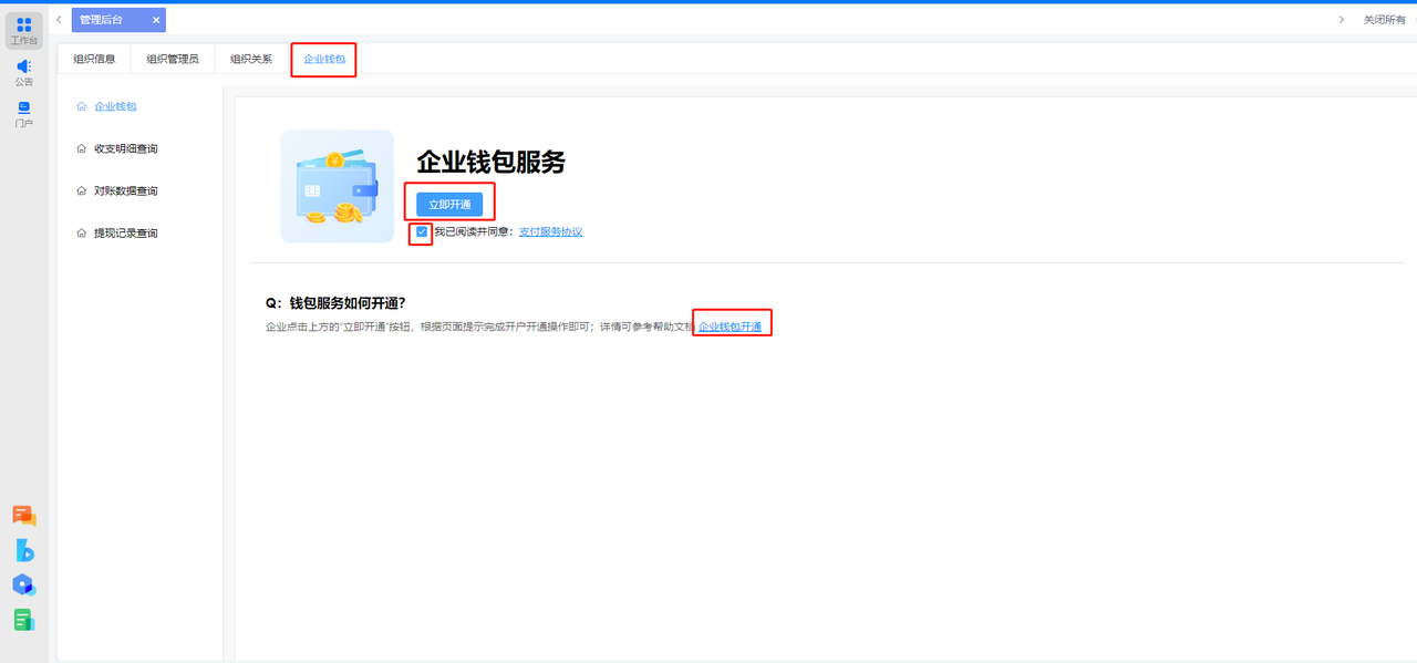 企业钱包开通